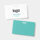 Easily personalise these simple turquoise light blue business Name Tags Badges with employee name and business logo. A simple business design in grey and white colours fully customisable in front and back sizes, sans-serif basic and modern fonts and a professional and clear look. These standard security id name tags badges are avaiable with lanyard, metal clip or with retractable. You can personalise your id badge cards choosing any background colour and any font style with Graphic Design editor by clicking on customise further. No minimum order.
