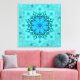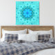 A soothing lotus mandala in shades of lapis blue, cobalt, aqua and turquoise, created from original photos of blue and green beach glass; there is quite a bit lotus pond activity to see in the design, including butterflies and Koi fish.