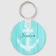 Turquoise blue nautical boat anchor keychain with name. Maritime theme design with navy sailing ship anchor. Personalizable gift for friends and family.