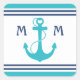 Turquoise Nautical Heart Anchor Square Sticker