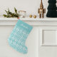 Vibrant wintry turquoise and white Nordic sweater patterned stocking features your name or monogram at the top in white calligraphy script lettering.