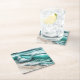 Beautiful turquoise ocean waves on the sand personalised wedding coasters with couple's names and wedding date.