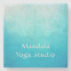 turquoise watercolor ombre background with transparent mandala and decorative script for information and all editable text.