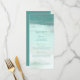 This beautiful wedding menu features an ombre watercolor wash in tones of turquoise. Reminiscent of tones of the ocean and perfect for a beach wedding.