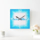 Turquoise on White, Monogram - Glitter | Square Wall Clock