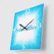 Elevate your office decor with this stylish square acrylic clock. Featuring a pristine white background framed by a sparkling turquoise glitter border, it prominently displays your personalised monogram at the centre. Ideal for small businesses, this elegant clock combines functionality and sophistication, making it a perfect addition to your professional workspace.