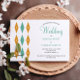 Turquoise Orange Diamond Star Mid Century Wedding Invitation