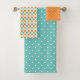 Embrace the charm of the Turquoise Orange Hearts Squares Retro Pattern Bath Towel Set and transform your bathroom into a more vibrant and enjoyable space.