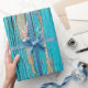 Turquoise Paint On Weathered Wood Wrapping Paper