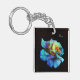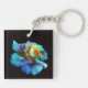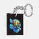 Personalise this rain kissed turquoise blue pastel rainbow rose key chain with you name or initials