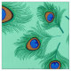 Turquoise Peacock Feathers on Light Aqua Fabric