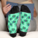 Socks in peacock feathers - turquoise / peacock green, with rust and cobalt blue eye, on a pastel aqua background