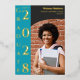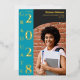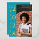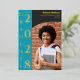 Announce your graduate's achievement with this striking photo graduation announcement in bold turquoise, soft cream, and chic charcoal. The design showcases your graduate's photo in an elegant arch-shaped frame alongside vertical "GRADUATE" text, class year, customizable name, school, and location—all front text in luxe gold foil. The back includes a photo medallion, class year, and personalized message with signature line. A colorful and modern design with distinctive styling. Fully customizable. Part of a complete graduation collection including invitations, announcements, thank you cards, and décor. For design support, please email remidevandesigns@gmail.com RemideVan©