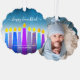Turquoise Photo Hanukkah Menorah Candles Modern Tree Decoration Card