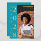 Thank family, friends, and mentors with this striking photo graduation thank you card in bold turquoise, soft cream, and chic charcoal. The design showcases your graduate's photo in an elegant arch-shaped frame alongside vertical "THANK YOU" text, customizable name, school, and location—all front text in luxe gold foil. The back features a graduation cap icon, personalized thank you message, and signature line. A colorful and modern design with distinctive styling. Fully customizable. Part of a complete graduation collection including invitations, announcements, thank you cards, and décor. For design support, please email remidevandesigns@gmail.com RemideVan©