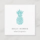 Elegant square business cards feature a tropical turquoise pineapple illustration on a crisp white background with two lines of custom text. Add your contact information to the reverse side. Includes three social media icons and a field for your username in white on matching robin's egg blue.
