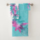 Turquoise Pink Abstract Hawaiian Flowers Bath Towel Set