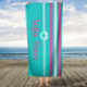 Turquoise & Pink Script Stripes Rope Custom Bath Towel. Simply edit text to personalise!