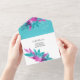 Turquoise Pink Tropical Abstract Flowers All In One Invitation