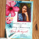 Turquoise, Pink Tropical Flowers Bat Mitzvah Invitation