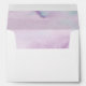 Turquoise and purple blue Dendrobium orchid flower wedding envelope (printed return address on the back flap) with lilac purple and turquoise watercolor background on the inside of the envelope and white colour on outside. This type of orchid is violet purple and teal or turquoise blue in colour and is called a blue Dendrobium orchid. There are also other shades of purple and blue or turquoise in this flower. This particular orchid flower is very affordable and is often used in peacock wedding themes.