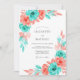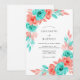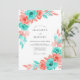 This design features a vibrant wash of watercolor blooms in striking shades of turquoise and coral pink. Lush ranunculus and delicate roses are paired with soft, painterly foliage to create a spirited atmosphere for a warm-weather event. The airy white background allows the saturated pigments to pop, evoking a sense of modern romance and artistic flair.