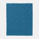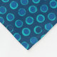 Fleece blanket with a pattern of bright turquoise rings and and blue dots on a darker blue background.