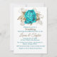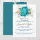 Turquoise Rose & Gold Feathers Wedding Invitation
