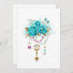 Antique gold key with trendy turquoise roses decorated with leaves of white gold and pink and blue beads. Fashionable colour. Turquoise roses. White gold. Blue tiffany.