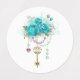 Antique gold key with trendy turquoise roses decorated with leaves of white gold and pink and blue beads. Fashionable colour. Turquoise roses. White gold. Blue tiffany.