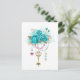 Antique gold key with trendy turquoise roses decorated with leaves of white gold and pink and blue beads. Fashionable colour. Turquoise roses. White gold. Blue tiffany.