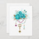 Antique gold key with trendy turquoise roses decorated with leaves of white gold and pink and blue beads. Fashionable colour. Turquoise roses. White gold. Blue tiffany.