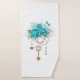 Antique gold key with trendy turquoise roses decorated with leaves of white gold and pink and blue beads. Fashionable colour. Turquoise roses. White gold. Blue tiffany.
