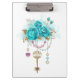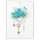 Antique gold key with trendy turquoise roses decorated with leaves of white gold and pink and blue beads. Fashionable colour. Turquoise roses. White gold. Blue tiffany.