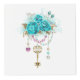 Antique gold key with trendy turquoise roses decorated with leaves of white gold and pink and blue beads. Fashionable colour. Turquoise roses. White gold. Blue tiffany.