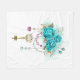 Turquoise Roses with Keys Fleece Blanket
