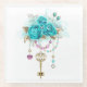 Turquoise Roses with Keys Glass Coaster