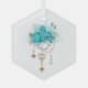 Antique gold key with trendy turquoise roses decorated with leaves of white gold and pink and blue beads. Fashionable colour. Turquoise roses. White gold. Blue tiffany.