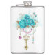 Antique gold key with trendy turquoise roses decorated with leaves of white gold and pink and blue beads. Fashionable colour. Turquoise roses. White gold. Blue tiffany.