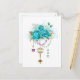 Antique gold key with trendy turquoise roses decorated with leaves of white gold and pink and blue beads. Fashionable colour. Turquoise roses. White gold. Blue tiffany.
