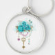 Antique gold key with trendy turquoise roses decorated with leaves of white gold and pink and blue beads. Fashionable colour. Turquoise roses. White gold. Blue tiffany.