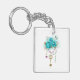 Antique gold key with trendy turquoise roses decorated with leaves of white gold and pink and blue beads. Fashionable colour. Turquoise roses. White gold. Blue tiffany.