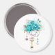 Antique gold key with trendy turquoise roses decorated with leaves of white gold and pink and blue beads. Fashionable colour. Turquoise roses. White gold. Blue tiffany.