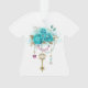 Antique gold key with trendy turquoise roses decorated with leaves of white gold and pink and blue beads. Fashionable colour. Turquoise roses. White gold. Blue tiffany.