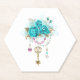Antique gold key with trendy turquoise roses decorated with leaves of white gold and pink and blue beads. Fashionable colour. Turquoise roses. White gold. Blue tiffany.