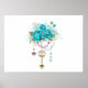 Antique gold key with trendy turquoise roses decorated with leaves of white gold and pink and blue beads. Fashionable colour. Turquoise roses. White gold. Blue tiffany.