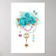 Turquoise Roses with Keys Poster