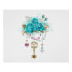 Antique gold key with trendy turquoise roses decorated with leaves of white gold and pink and blue beads. Fashionable colour. Turquoise roses. White gold. Blue tiffany.