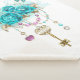 Antique gold key with trendy turquoise roses decorated with leaves of white gold and pink and blue beads. Fashionable colour. Turquoise roses. White gold. Blue tiffany.