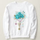 Antique gold key with trendy turquoise roses decorated with leaves of white gold and pink and blue beads. Fashionable colour. Turquoise roses. White gold. Blue tiffany.